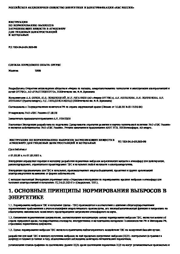 Инструкция по нормированию выбросов загрязняющих веществ в атмосферу для тепловых электростанций и котельных