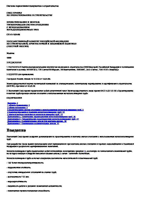 Наша цель состоит в том, чтобы предоставить вам быстрый доступ к содержанию документа Проектирование и монтаж трубопроводов систем отопления с использованием металлополимерных труб.