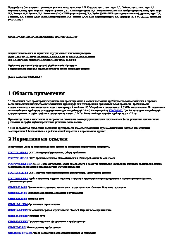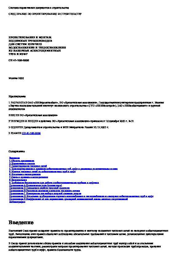 Наша цель состоит в том, чтобы предоставить вам быстрый доступ к содержанию документа Проектирование и монтаж подземных трубопроводов для систем горячего водоснабжения и теплоснабжения из напорных асбестоцементны.