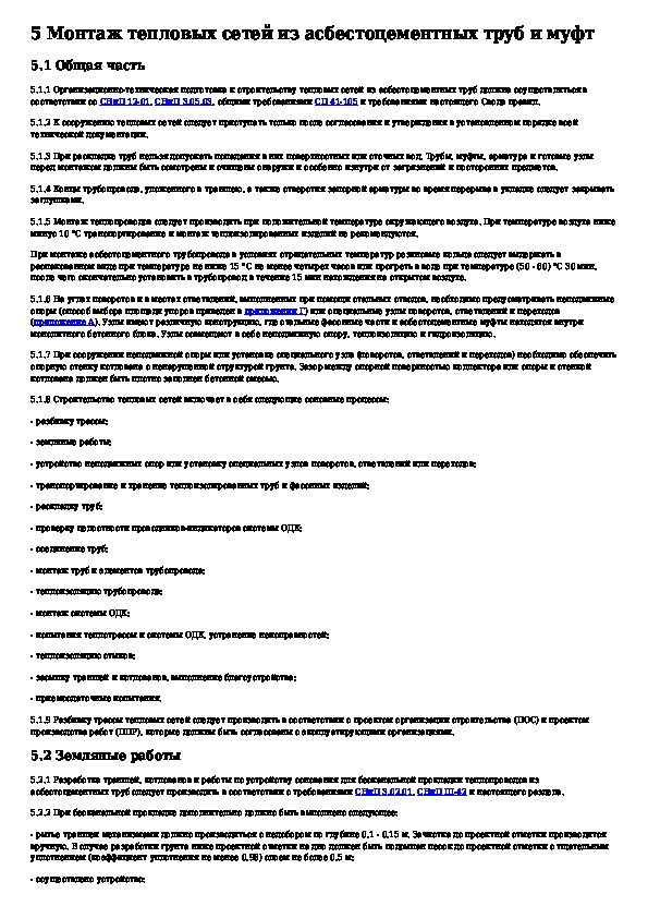 Проектирование и монтаж подземных трубопроводов для систем горячего водоснабжения и теплоснабжения из напорных асбестоцементны