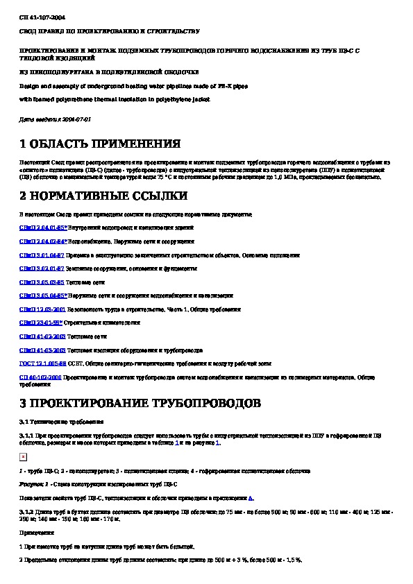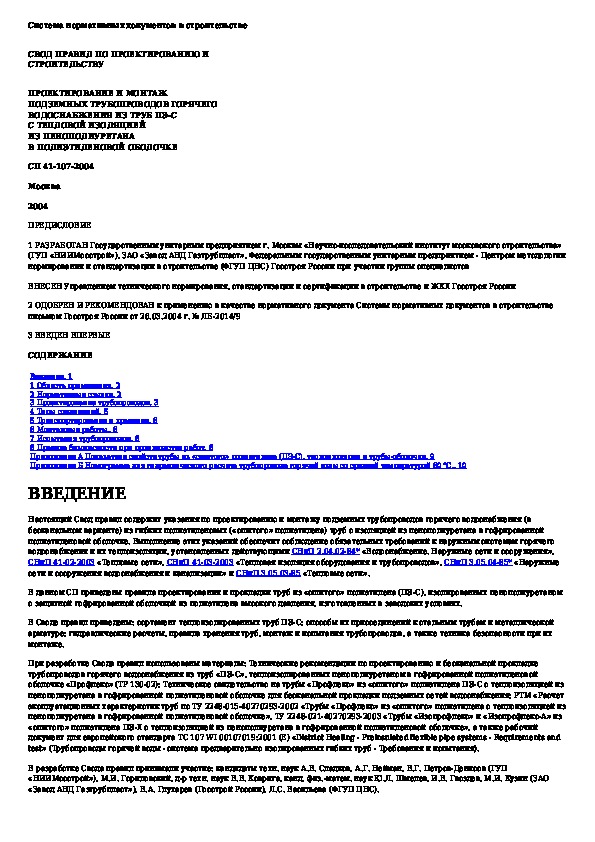 СП 41-107-2004: Проектирование и монтаж подземных трубопроводов горячего водоснабжения из труб ПЭ-С с тепловой изоляцией из пенополиуретана в по