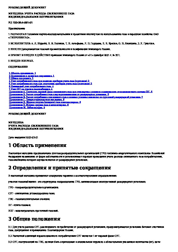 РД 153-39.4-081-01: Методика учета расхода сжиженного газа индивидуальными потребителями