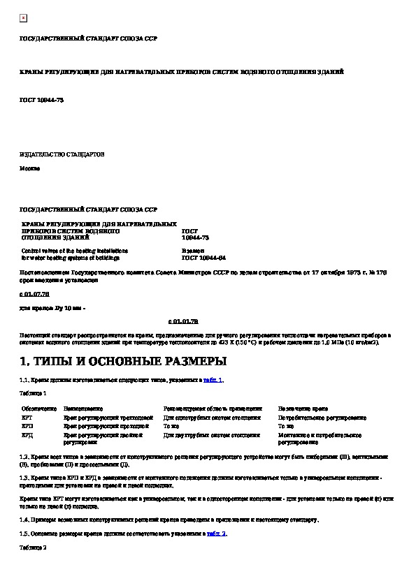 ГОСТ 10944-75: Краны регулирующие для нагревательных приборов систем водяного отопления зданий