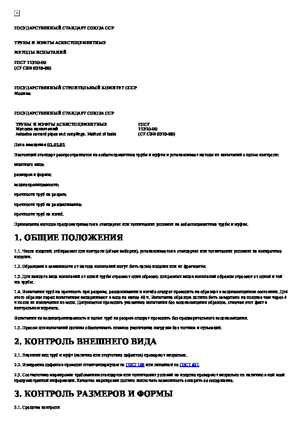 ГОСТ 11310-90: Трубы и муфты асбестоцементные. Методы испытаний