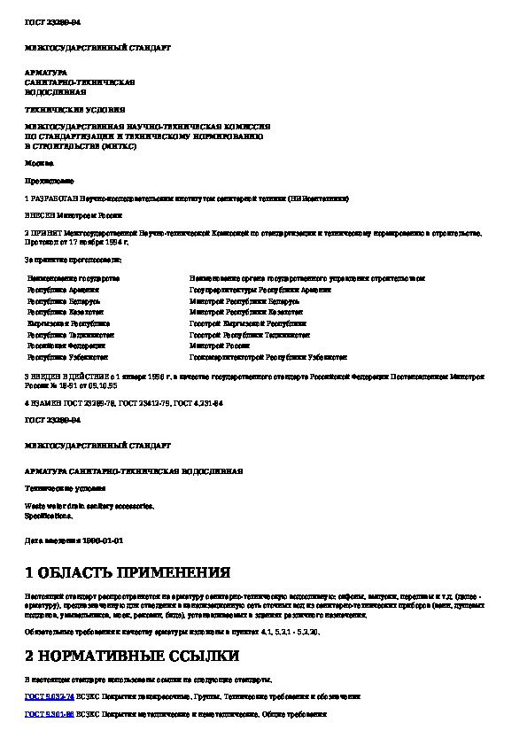 ГОСТ 23289-94: Арматура санитарно-техническая водосливная. Технические условия