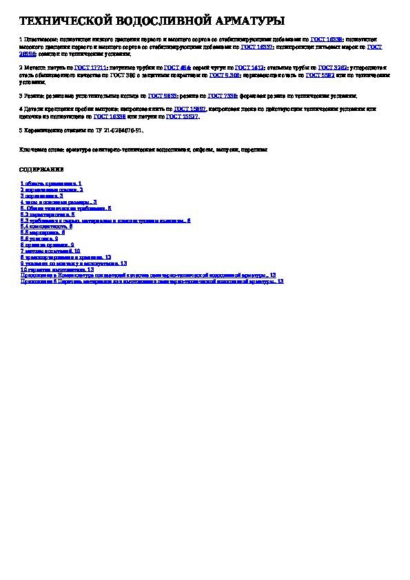Наша цель состоит в том, чтобы предоставить вам быстрый доступ к содержанию документа Арматура санитарно-техническая водосливная. Технические условия.