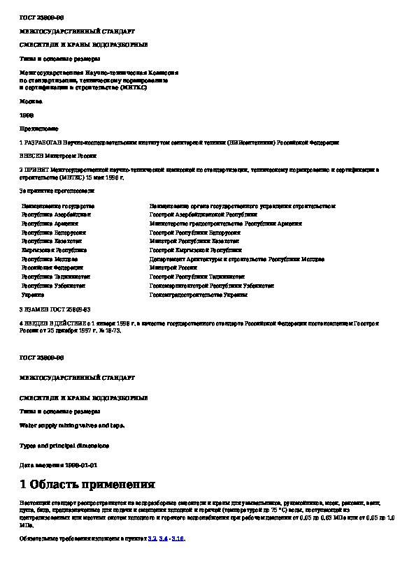 Наша цель состоит в том, чтобы предоставить вам быстрый доступ к содержанию документа Смесители и краны водоразборные. Типы и основные размеры.