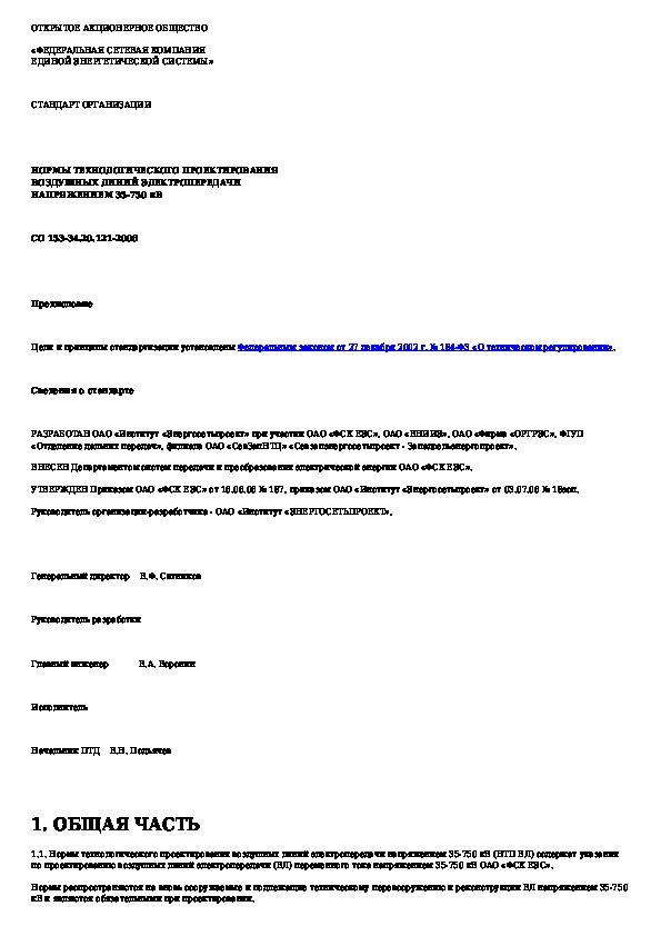 Нормы технологического проектирования воздушных линий электропередачи напряжением 35 - 750 кВ