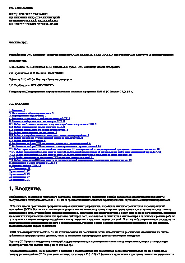 Наша цель состоит в том, чтобы предоставить вам быстрый доступ к содержанию документа Методические указания по применению ограничителей перенапряжений нелинейных в электрических сетях 6-35 кВ.