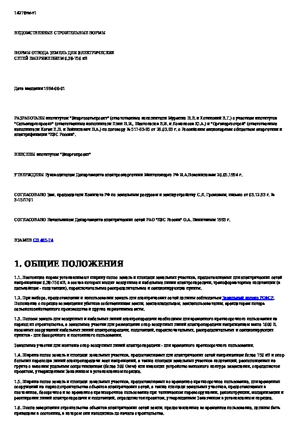 Наша цель состоит в том, чтобы предоставить вам быстрый доступ к содержанию документа Нормы отвода земель для электрических сетей напряжением 0,38 - 750 кВ.