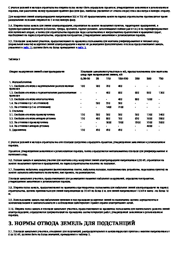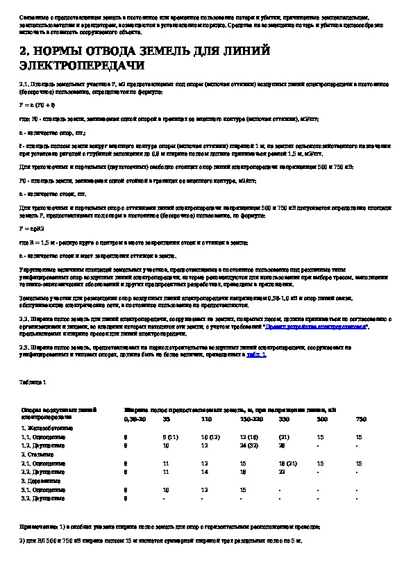 Нормы отвода земель для электрических сетей напряжением 0,38 - 750 кВ