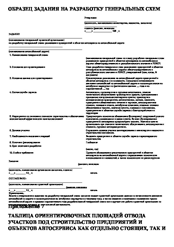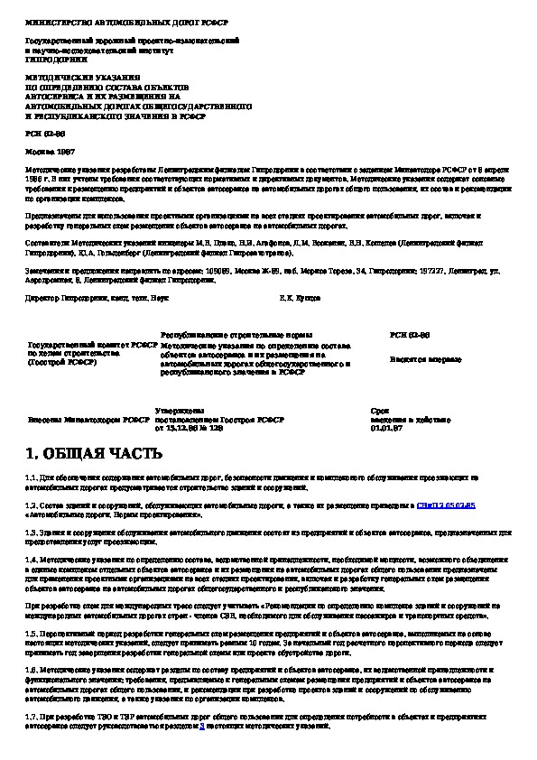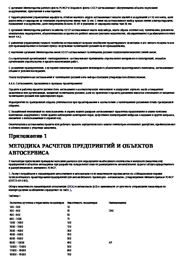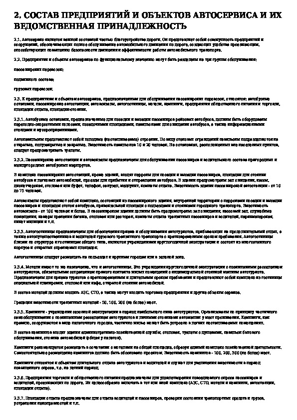 Методические указания по определению состава объектов автосервиса и их размещения на автомобильных дорогах общегосударственног