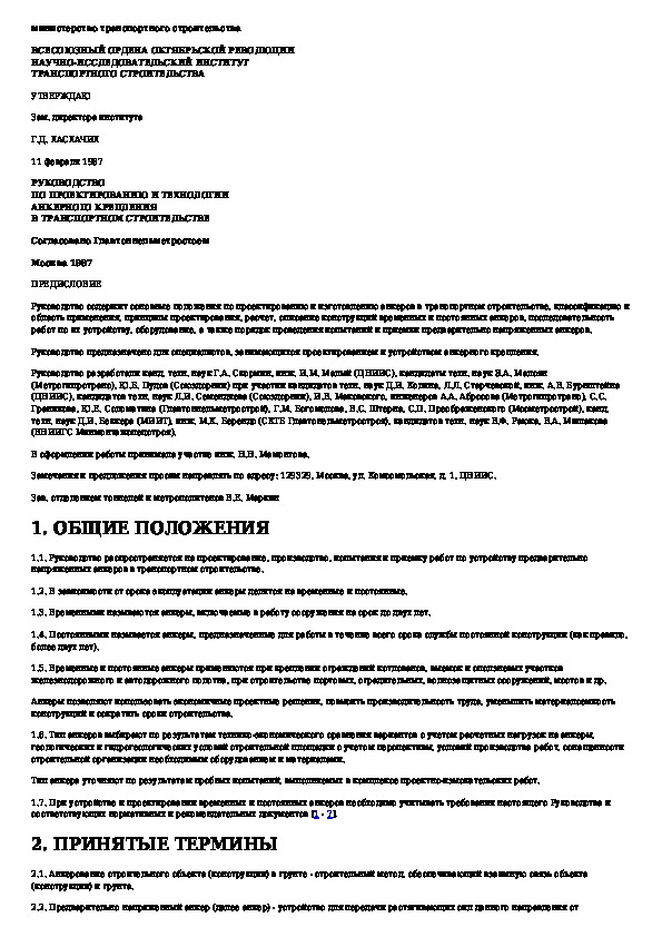 Наша цель состоит в том, чтобы предоставить вам быстрый доступ к содержанию документа Руководство по проектированию и технологии устройства анкерного крепления в транспортном строительстве.