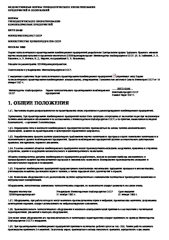 Наша цель состоит в том, чтобы предоставить вам быстрый доступ к содержанию документа Ведомственные нормы технологического проектирования комбикормовых предприятий.