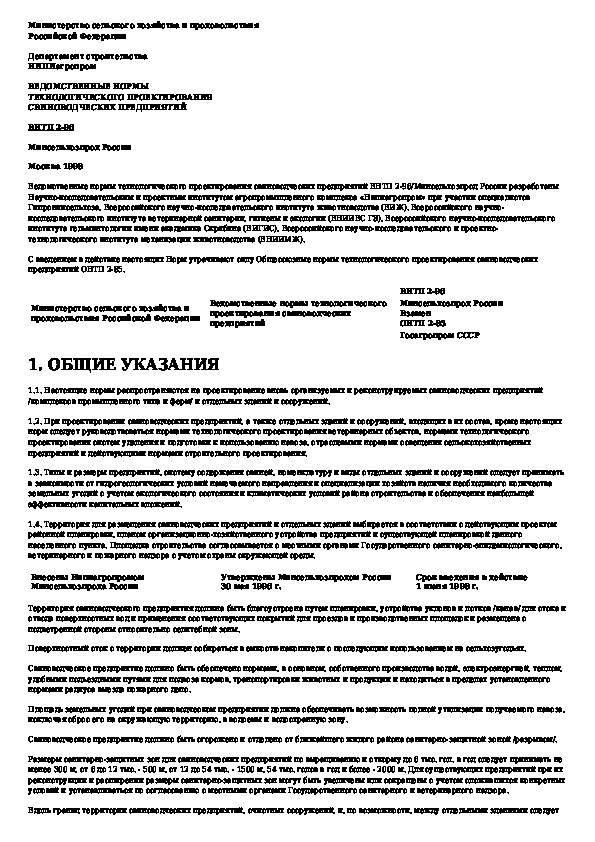 Наша цель состоит в том, чтобы предоставить вам быстрый доступ к содержанию документа Ведомственные нормы технологического проектирования свиноводческих предприятий.