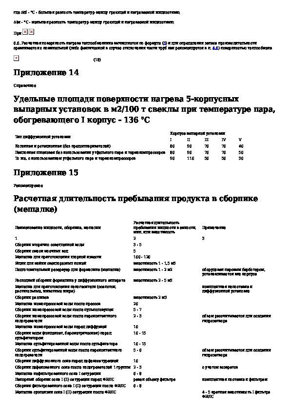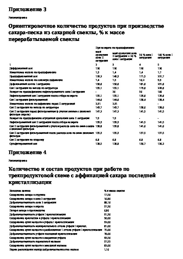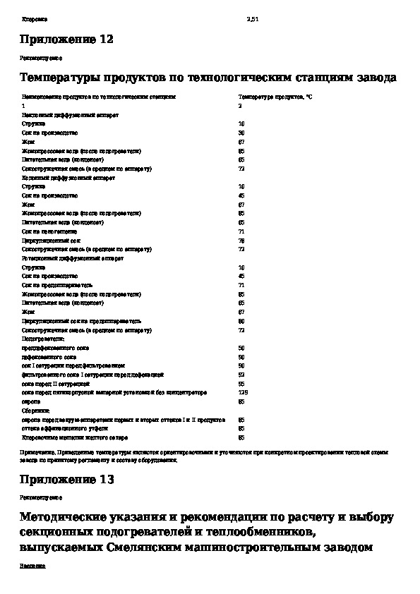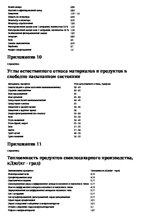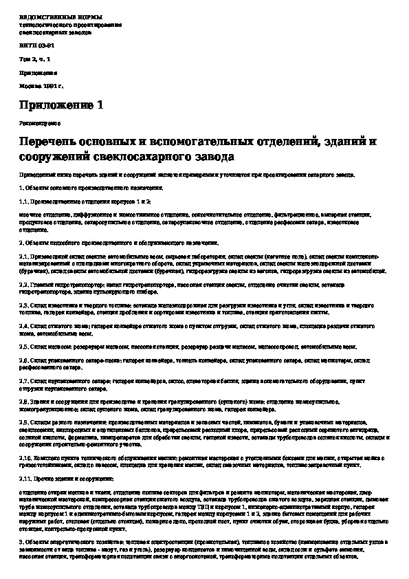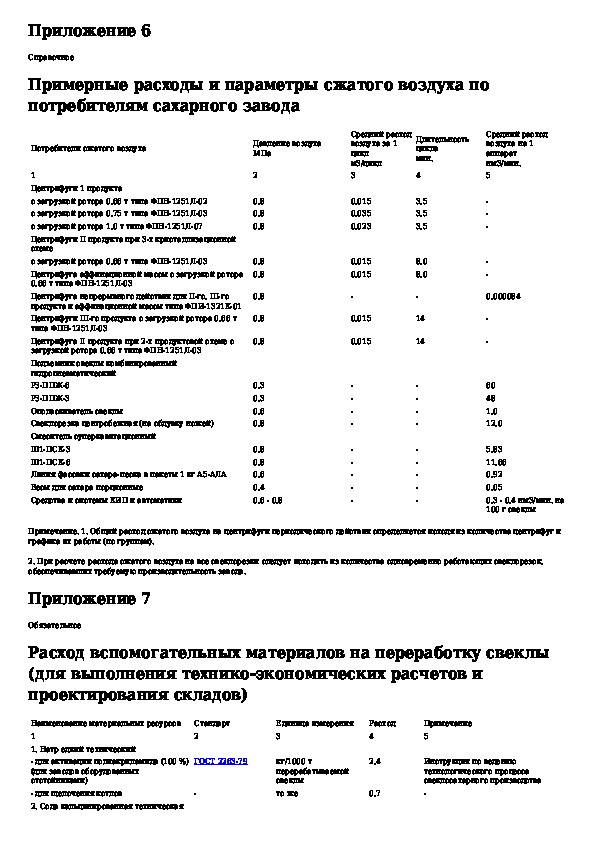Ведомственные нормы технологического проектирования свеклосахарных заводов. Том 2, часть 1. Приложения