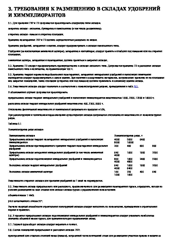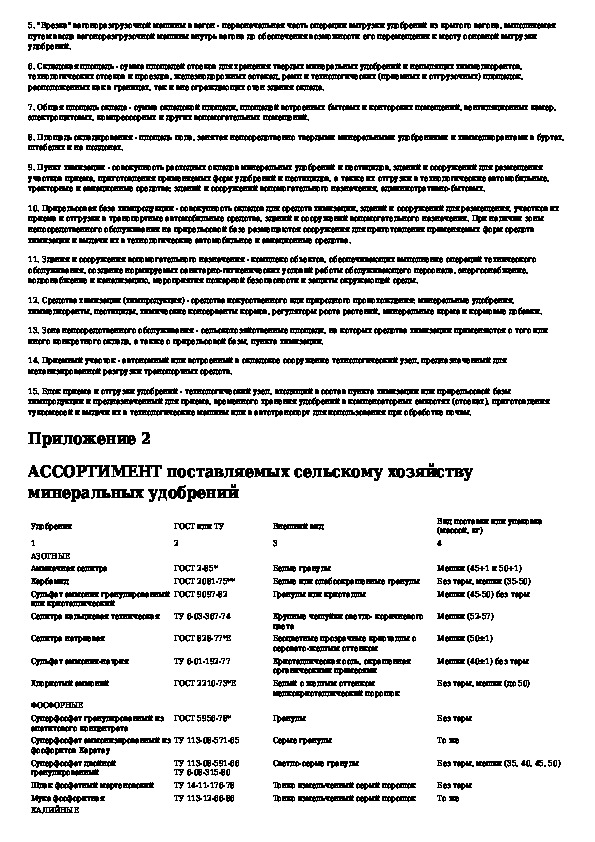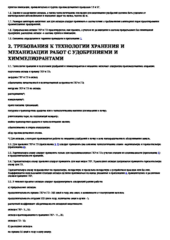 Ведомственные нормы технологического проектирования складов твердых минеральных удобрений и химических мелиорантов
