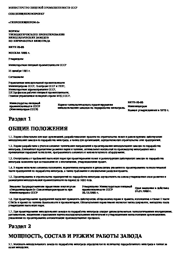 Ведомственные нормы технологического проектирования винодельческих заводов по переработке винограда