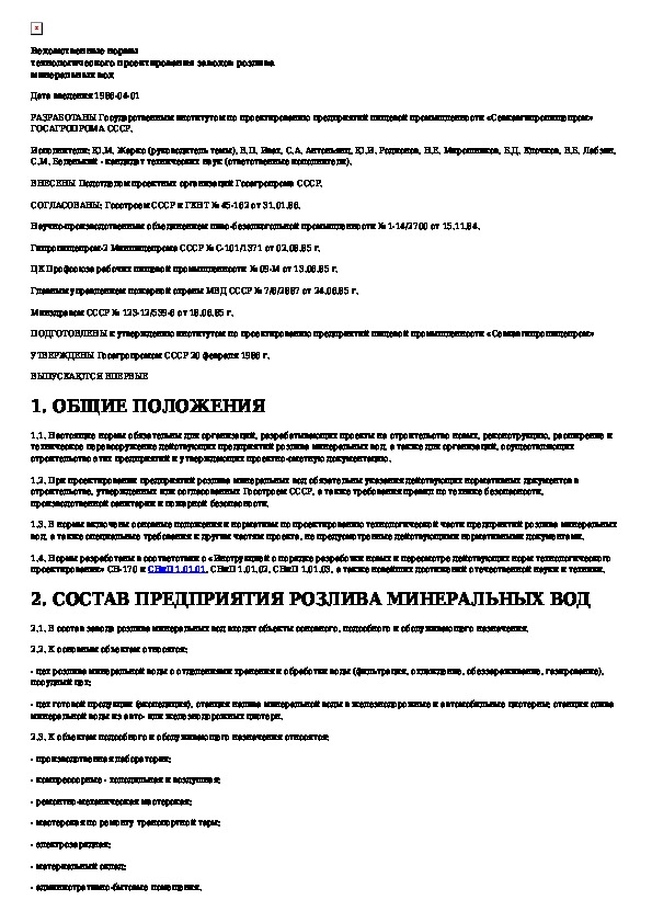 Ведомственные нормы технологического проектирования заводов розлива минеральных вод