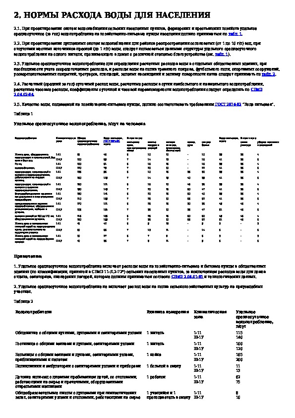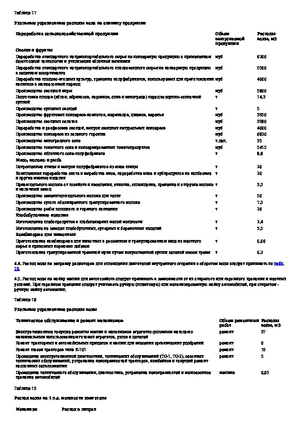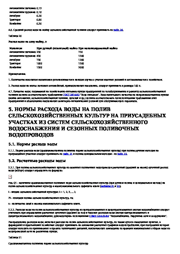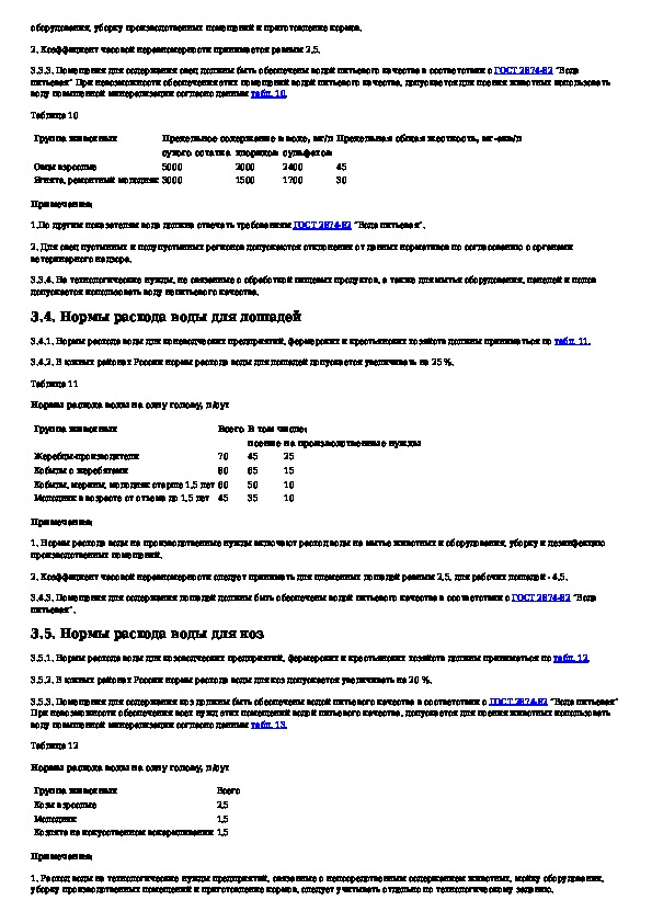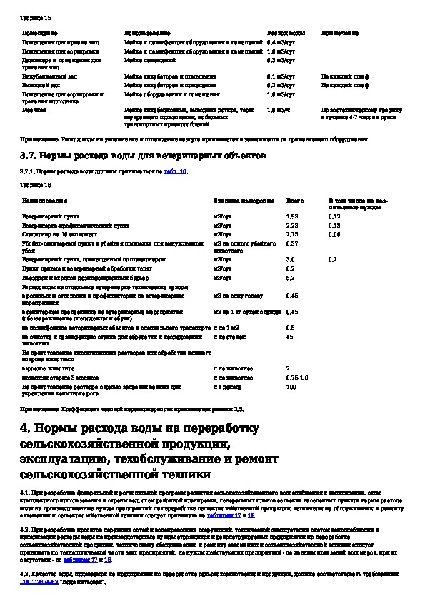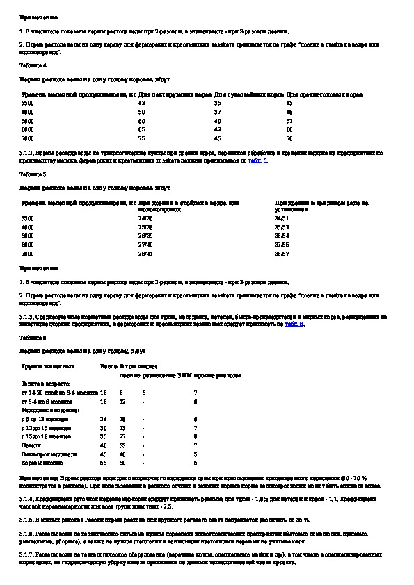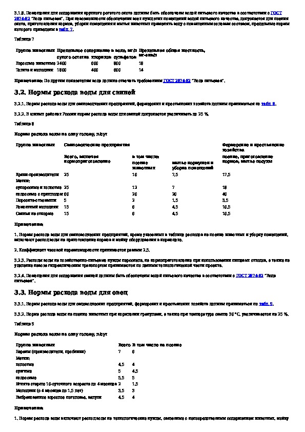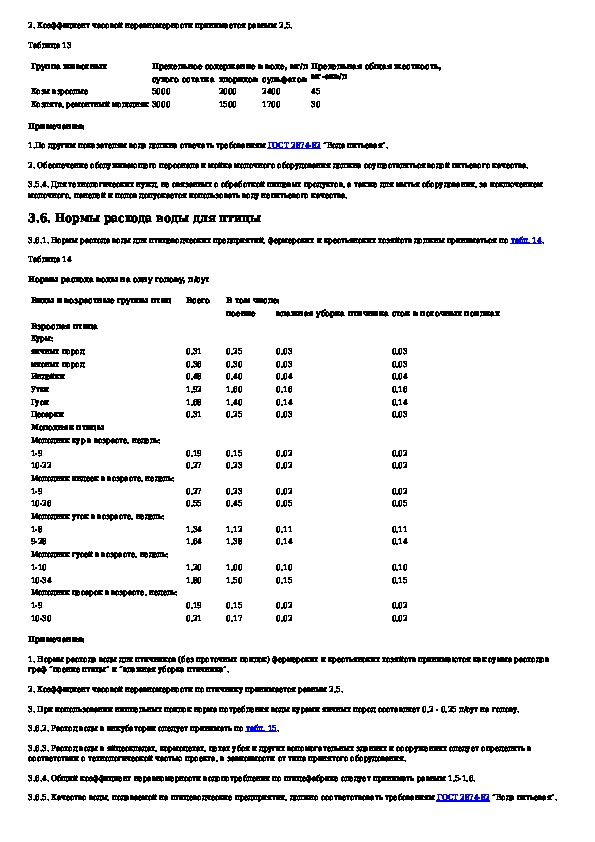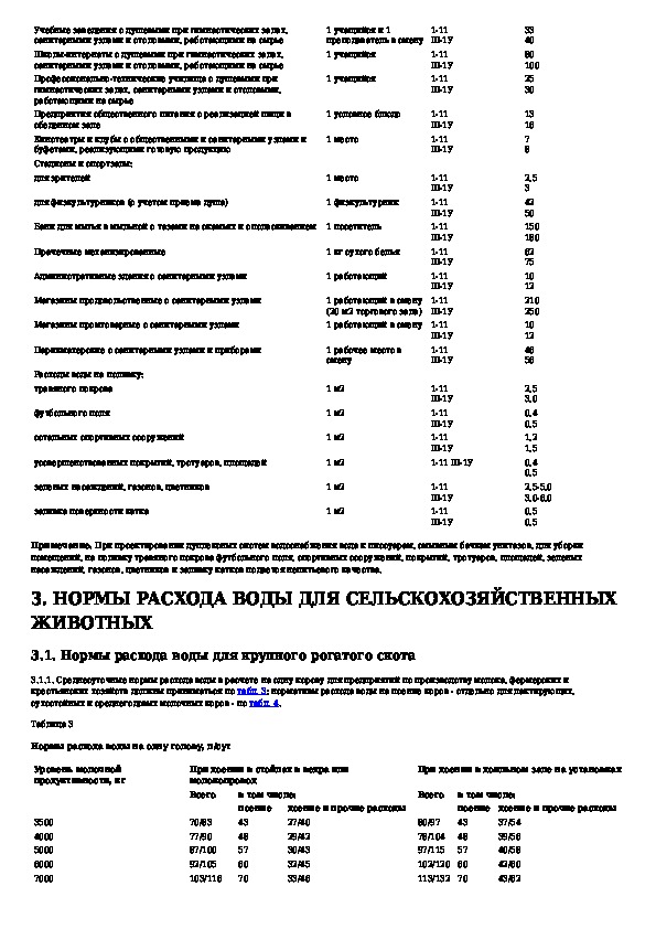 Нормы расходов воды потребителей систем сельскохозяйственного водоснабжения