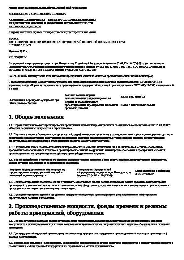 Наша цель состоит в том, чтобы предоставить вам быстрый доступ к содержанию документа Нормы технологического проектирования предприятий молочной промышленности.
