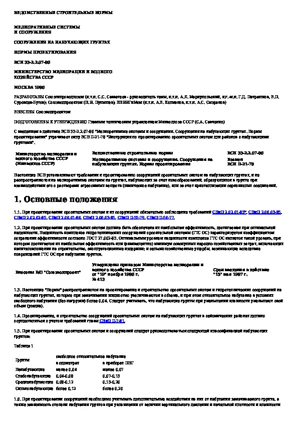 Наша цель состоит в том, чтобы предоставить вам быстрый доступ к содержанию документа Мелиоративные системы и сооружения. Сооружения на набухающих грунтах. Нормы проектирования.