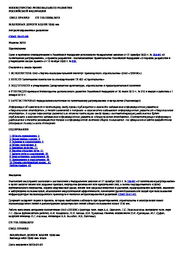 СП 119.13330.2012: Железные дороги колеи 1520 мм
