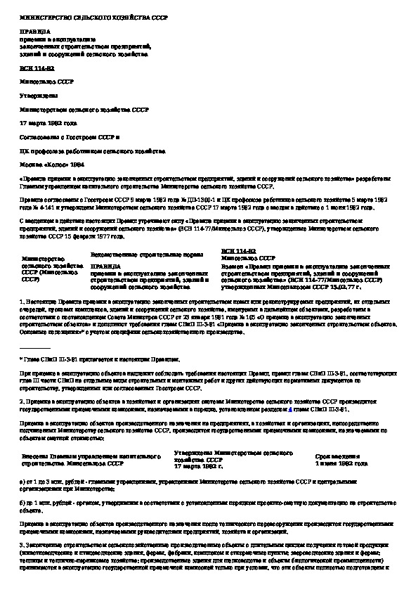 Правила приемки в эксплуатацию законченных строительством предприятий, зданий и сооружений сельского хозяйства