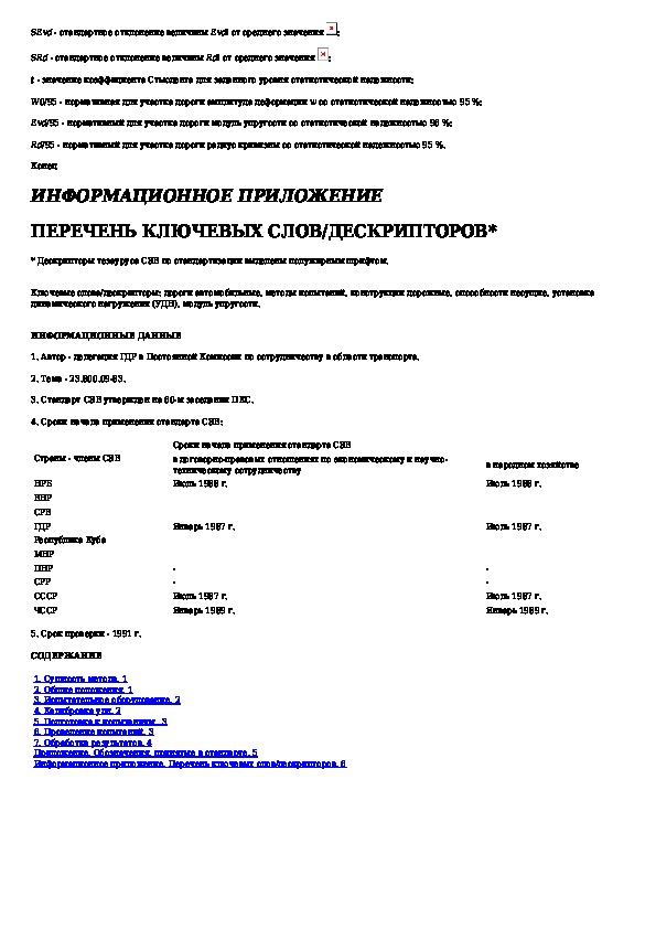 Наша цель состоит в том, чтобы предоставить вам быстрый доступ к содержанию документа Дороги автомобильные международные. Определение несущей способности дорожных конструкций и их конструктивных слоев установкой д.