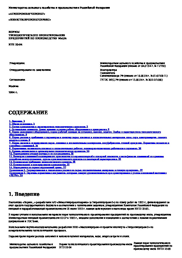Наша цель состоит в том, чтобы предоставить вам быстрый доступ к содержанию документа Нормы технологического проектирования предприятий по производству мыла.