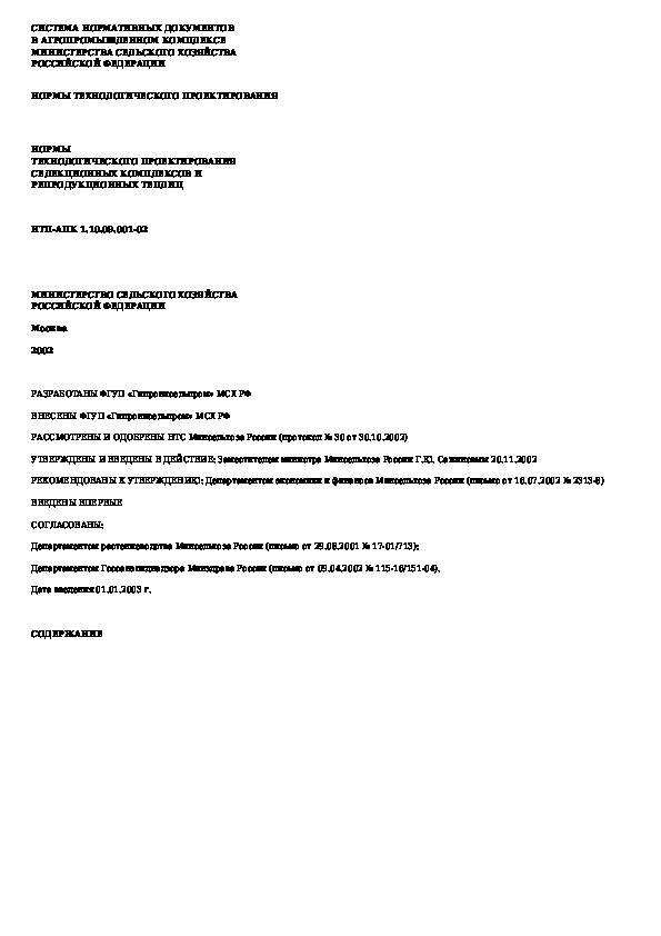 НТП АПК 1.10.09.001-02: Нормы технологического проектирования селекционных комплексов и репродукционных теплиц