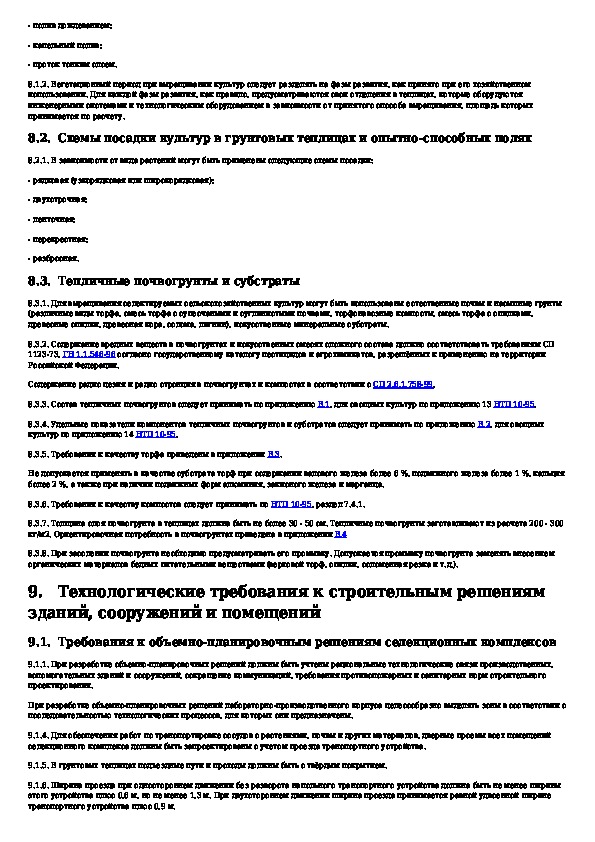 Нормы технологического проектирования селекционных комплексов и репродукционных теплиц