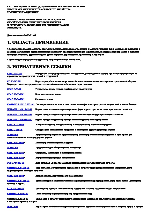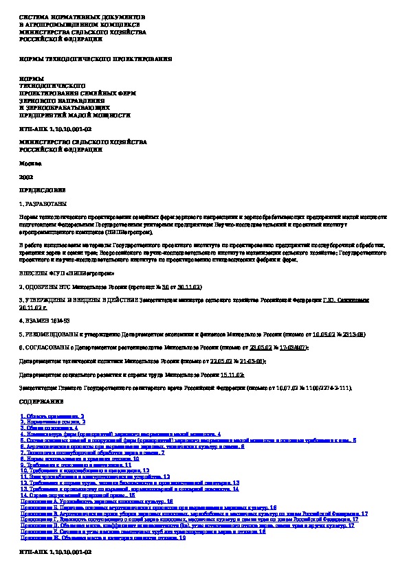 НТП АПК 1.10.10.001-02: Нормы технологического проектирования семейных ферм зернового направления и зернообрабатывающих предприятий малой мощности