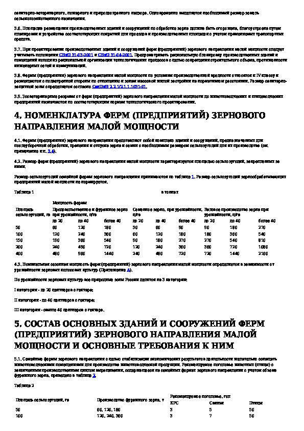 Нормы технологического проектирования семейных ферм зернового направления и зернообрабатывающих предприятий малой мощности