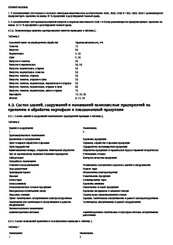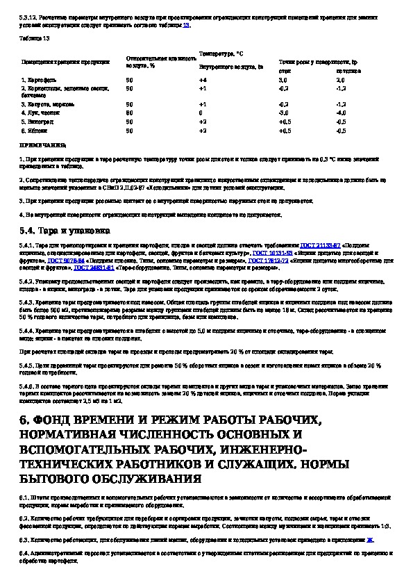 Нормы технологического проектирования предприятий по хранению и обработке картофеля и плодоовощной продукции