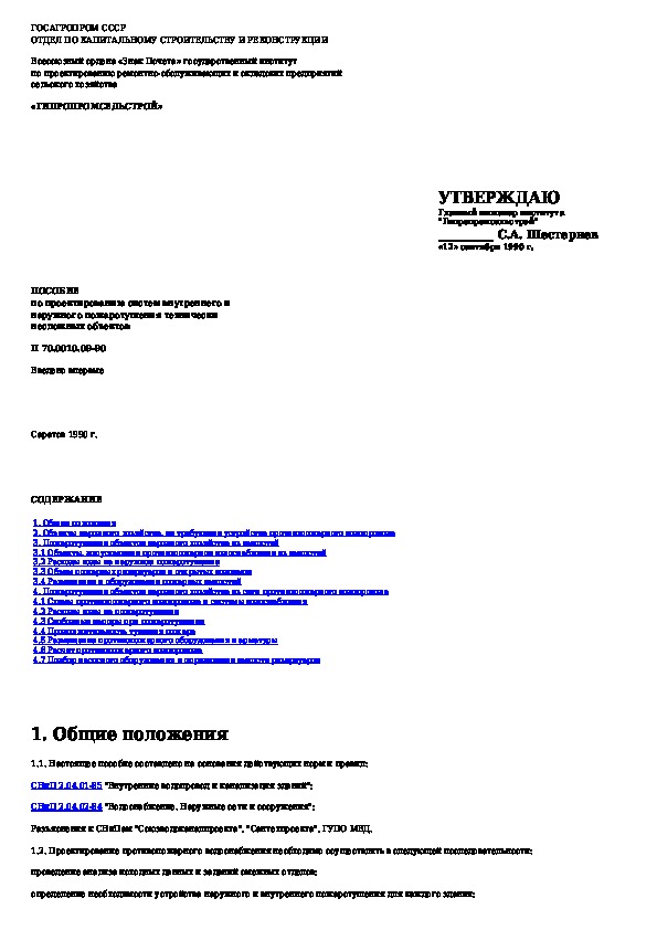 П 70.0010.09-90: Пособие по проектированию систем внутреннего и наружного пожаротушения технически несложных объектов