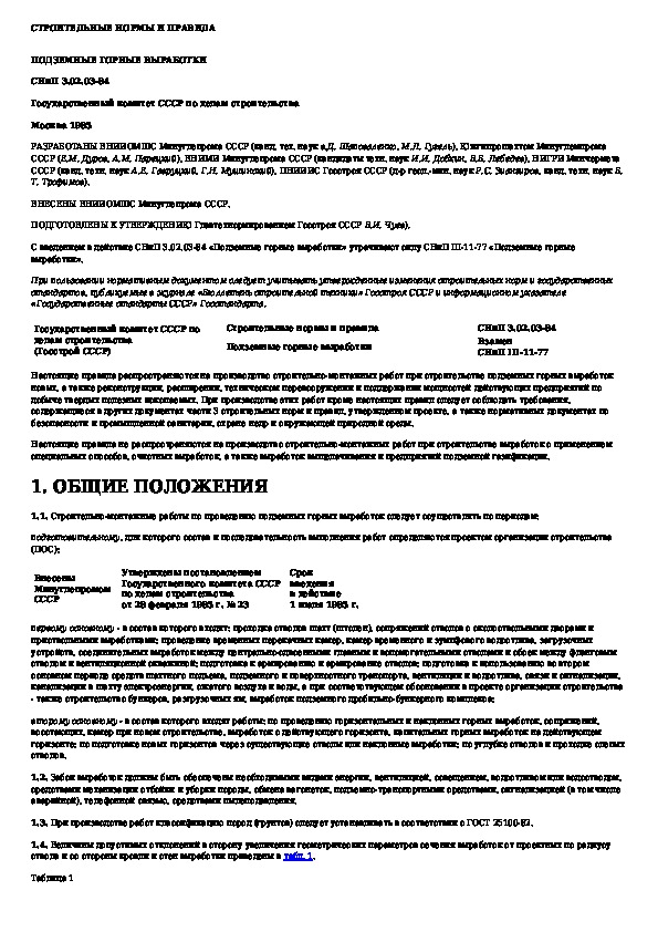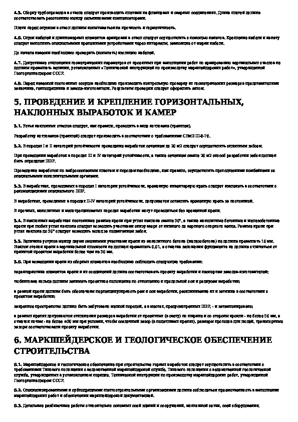 СНиП 3.02.03-84: Подземные горные выработки