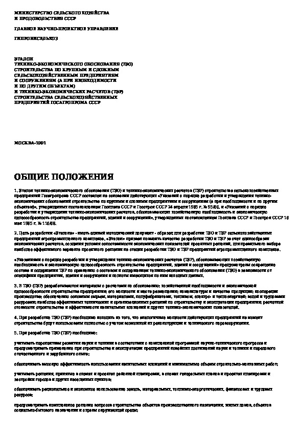 Наша цель состоит в том, чтобы предоставить вам быстрый доступ к содержанию документа Эталон технико-экономического обоснования (ТЭО) строительства по крупным и сложным сельскохозяйственным предприятиям и сооружен.