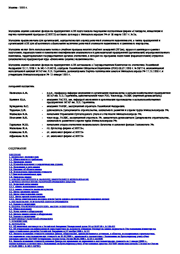 Наша цель состоит в том, чтобы предоставить вам быстрый доступ к содержанию документа Методика оценки основных фондов на предприятиях АПК.