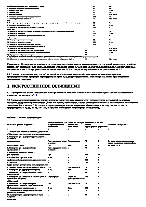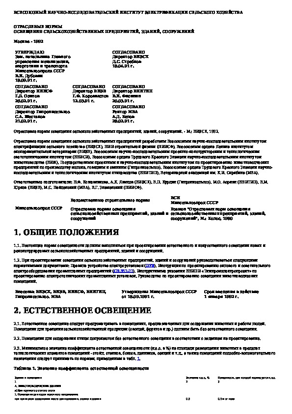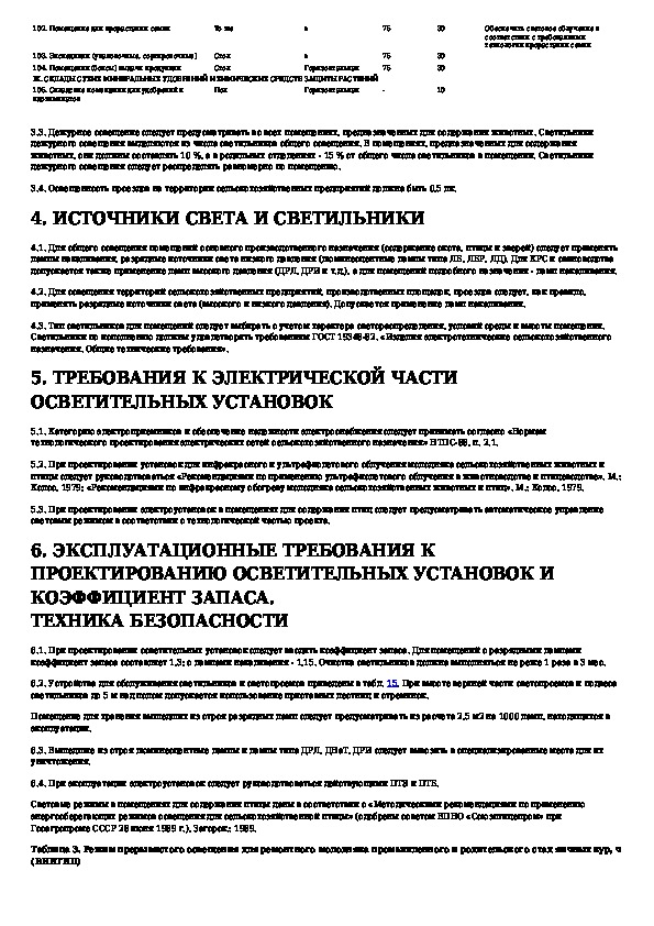 Отраслевые нормы освещения сельскохозяйственных предприятий, зданий, сооружений