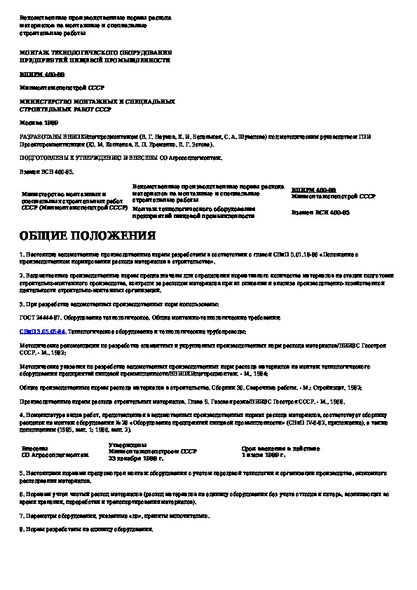 ВПНРМ 460-88: Ведомственные производственные нормы расхода материалов на монтажные и специальные строительные работы. Монтаж технологическог