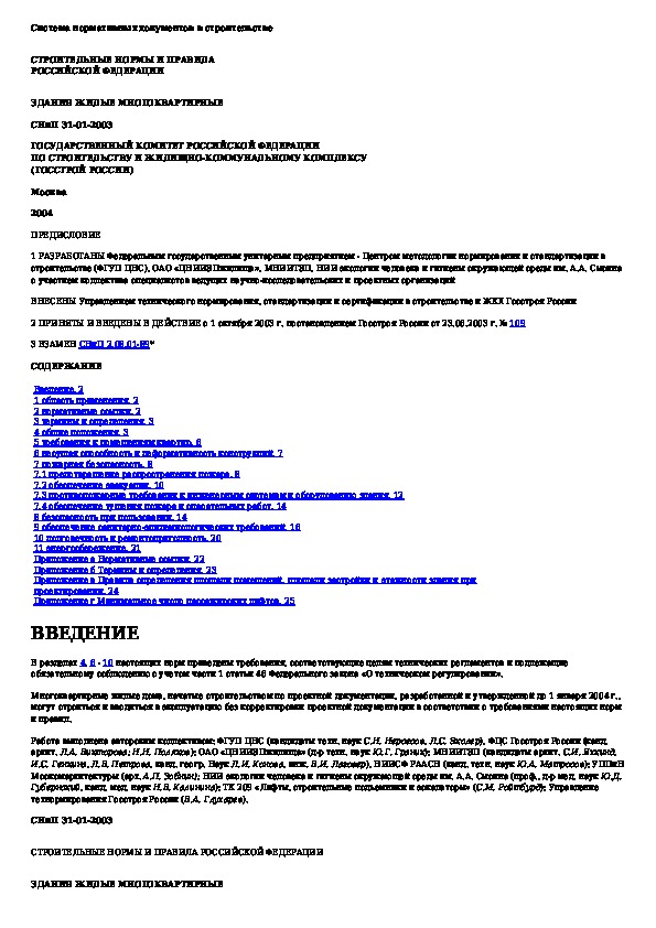 СНиП 31-01-2003: Здания жилые многоквартирные