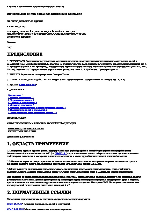 СНиП 31-03-2001: Производственные здания