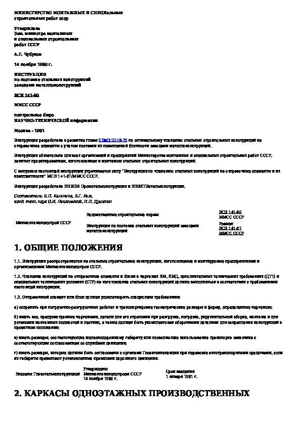Инструкция по поставке стальных конструкций заводами металлоконструкций