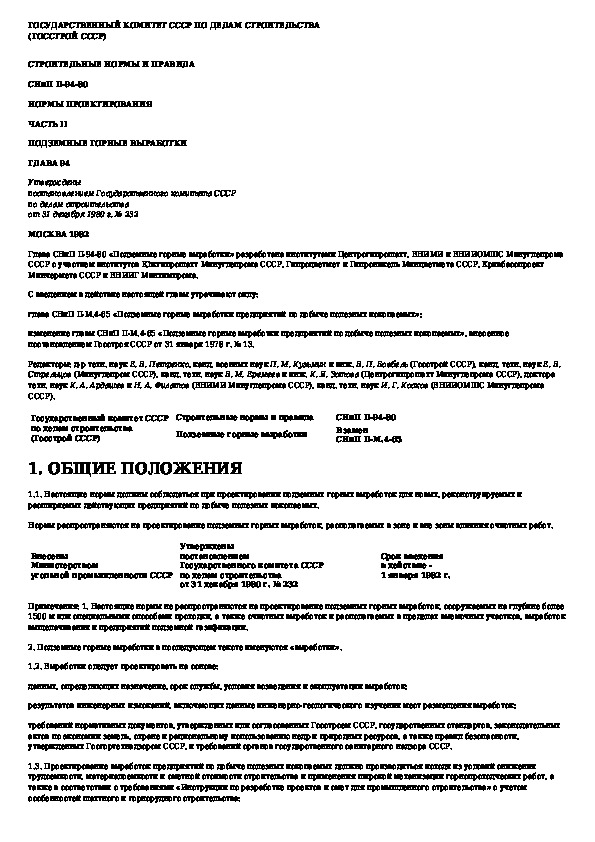 СНиП II-94-80: Подземные горные выработки