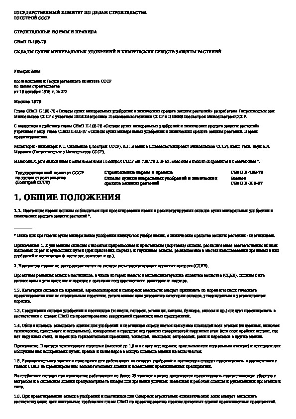 СНиП II-108-78: Склады сухих минеральных удобрений и химических средств защиты растений