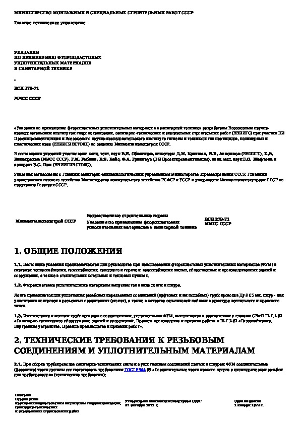 Наша цель состоит в том, чтобы предоставить вам быстрый доступ к содержанию документа Указания по применению фторопластовых уплотнительных материалов в санитарной технике.