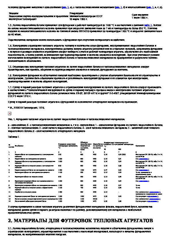 Инструкция по проектированию футеровок тепловых агрегатов нефтеперерабатывающей промышленности из легкого жаростойкого бетона