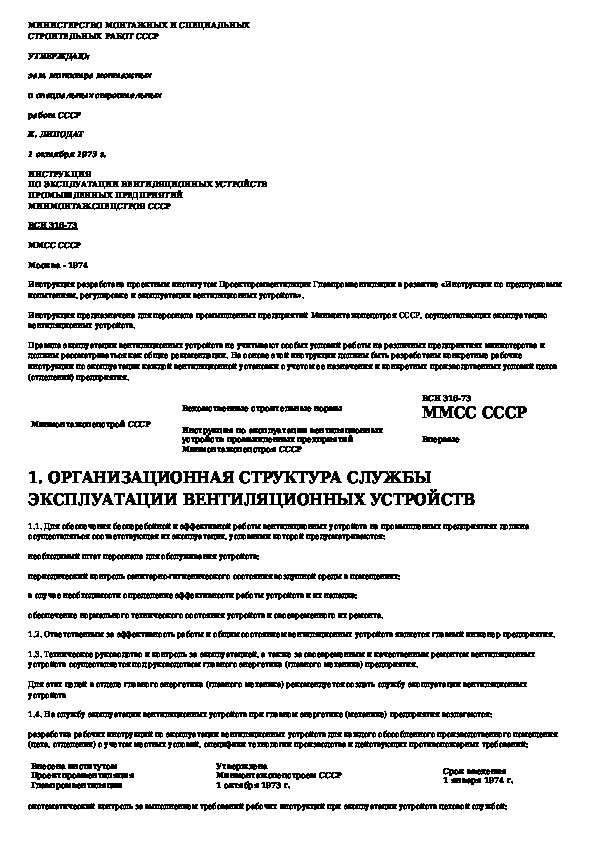 Инструкция по эксплуатации вентиляционных устройств промышленных предприятий Минмонтажспецстроя СССР