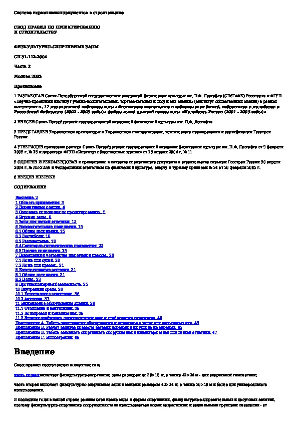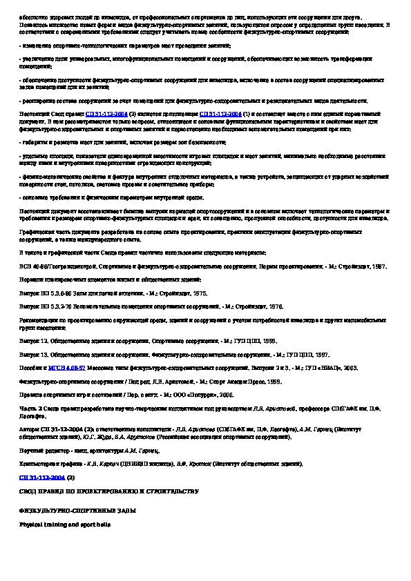 СП 31-112-2004: Физкультурно-спортивные залы. Часть 2